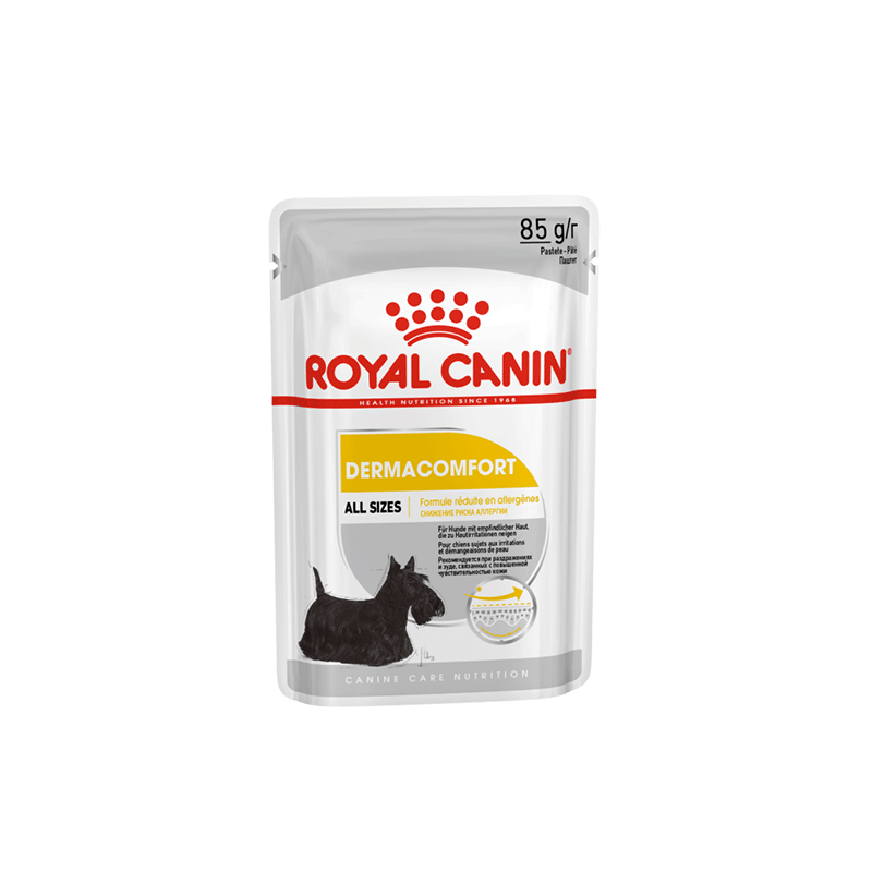 Royal Canin konservai visų veislių šunims, turintiems jautrią, sudirgusią odą ir kenčiantiems nuo niežulio ar nedidelių odos uždegimų.