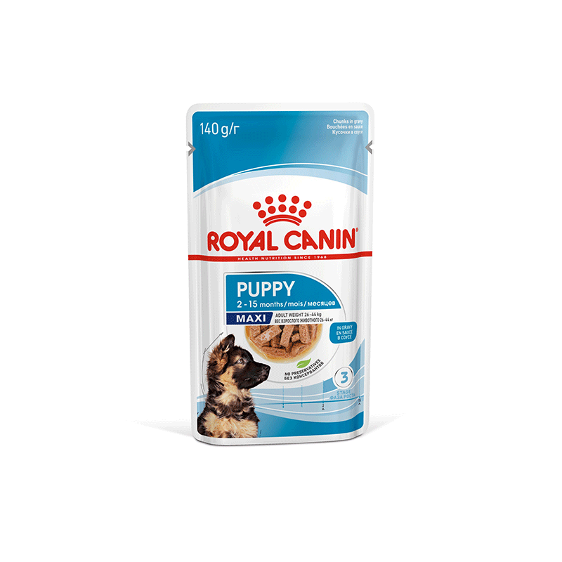 Royal Canin Maxi Puppy Dog – konservai šuniukams, padedantys palaikyti sveiką vystymąsi.