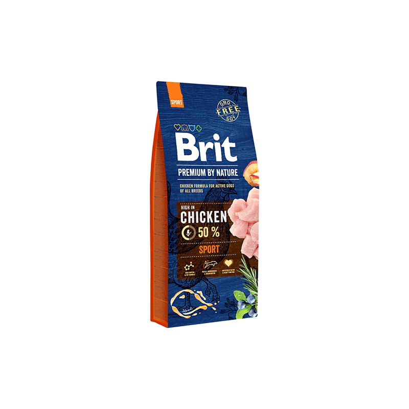 Brit Premium By Nature Sport – visavertis sausas maistas šunims su dideliu energijos poreikiu, užtikrinantis sveiką raumenų vystymąsi ir stiprų imunitetą.