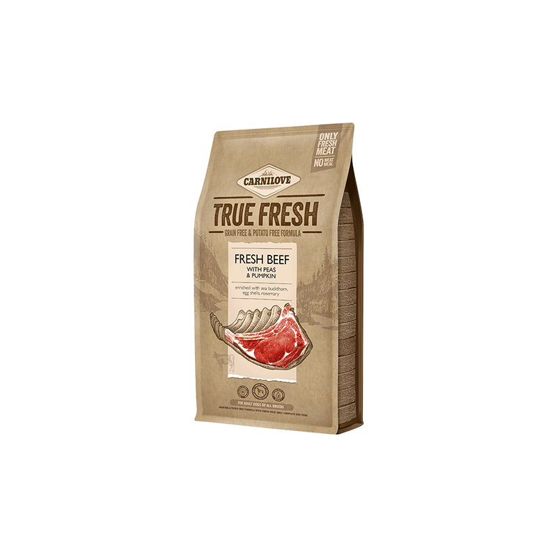Carlinove True Fresh maistas šunims iš šviežios jautienos. Lengvai virškinamas ir gausus vertingų maistinių medžiagų, užtikrinančių visavertę šuns mitybą.