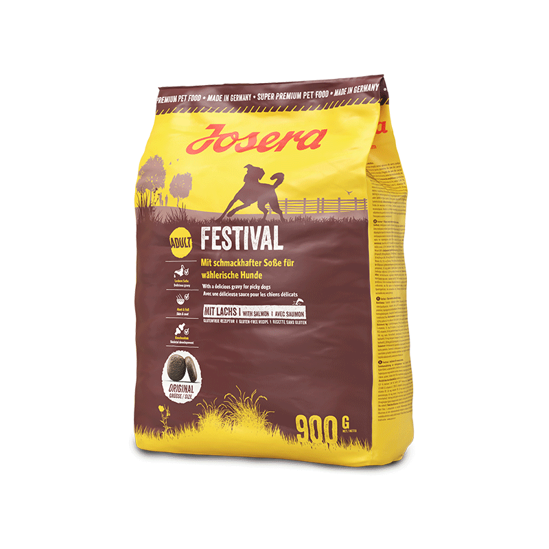 Josera Festival – super premium klasės maistas šunims su lašiša, ryžiais ir gardžiu padažu.
