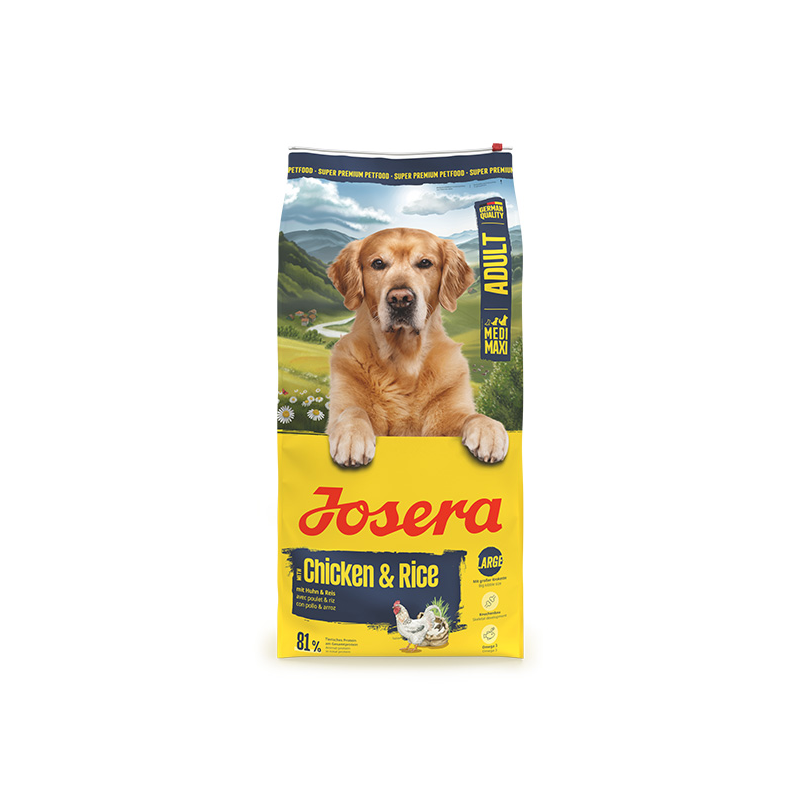 Josera maistas vidutinio dydžio ir didelių veislių šunims su vištiena ir ryžiais, padedantis sumažinti apsirijimo riziką ir skatinantis sotumo jausmą – sudėtyje gausu skaidulinių medžiagų.