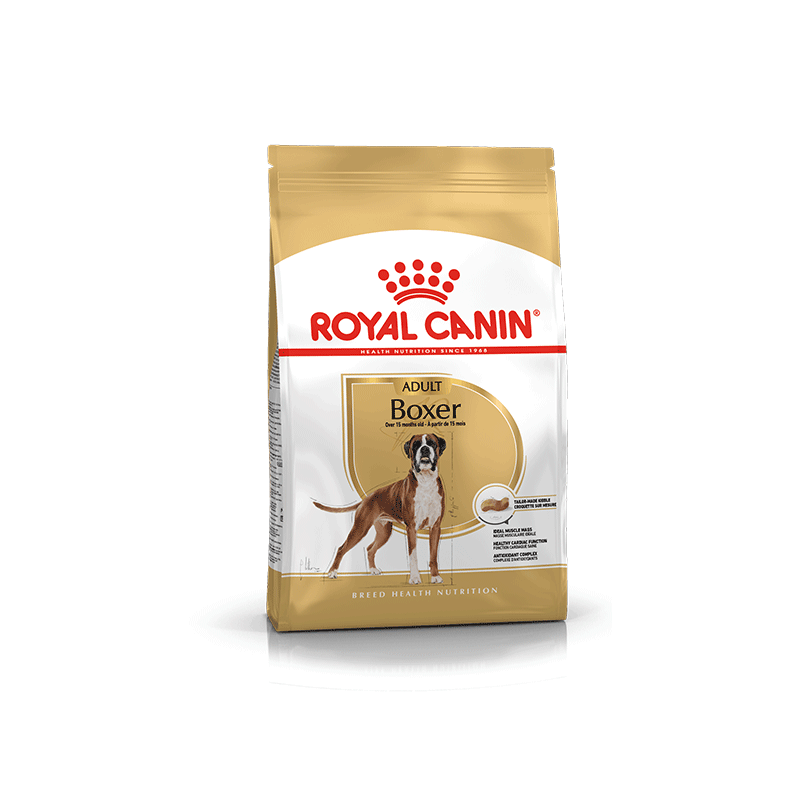 Royal Canin bokserių veislės šunims subalansuotas šunų maistas, padedantis stiprinti sąnarius ir išlaikyti raumenų masę.