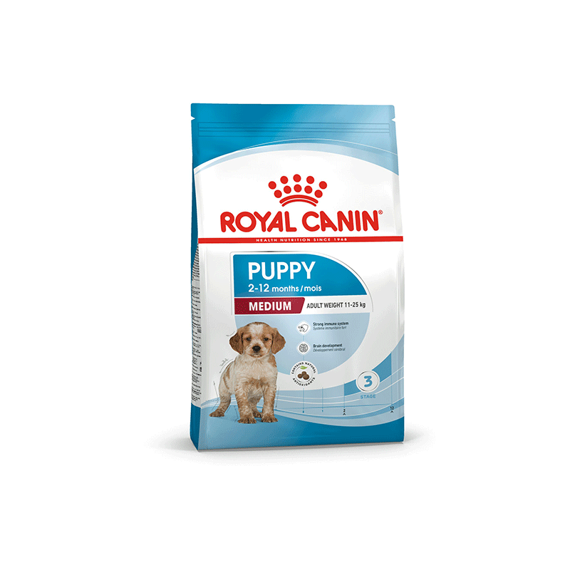 Royal Canin sausas maistas vidutinio dydžio veislių šuniukams, padedantis sustiprinti natūralią organizmo apsaugą ir palaikyti sveiką virškinamojo trakto veiklą.