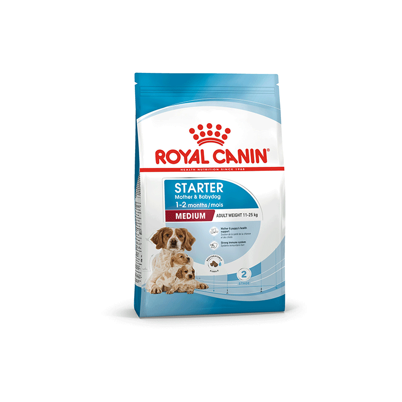 Royal Canin Medium Starter – maistas vidutinio dydžio veislių kalėms ir jų šuniukams, patenkinantis visus poreikius svarbiausiu gyvenimo laikotarpiu.