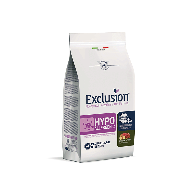 Exclusion Hypoallergenic Horse & Potato all breeds – sausas maistas su arkliena ir bulvėmis, padedantis sumažinti maistinių medžiagų netoleravimą.