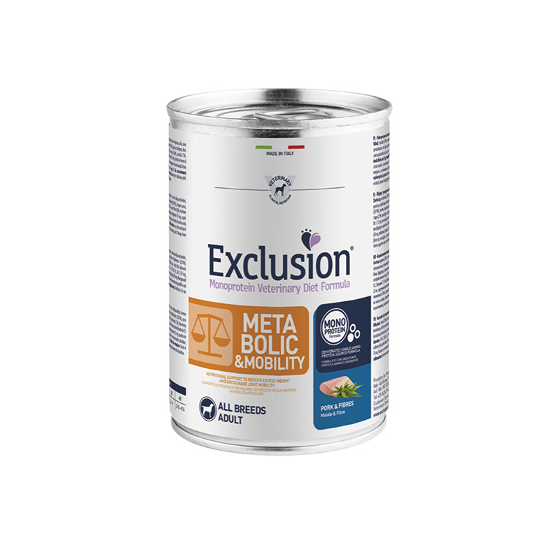 Exclusion Metabolic & Mobility – konservai šunims su kiauliena ir kanapėmis.