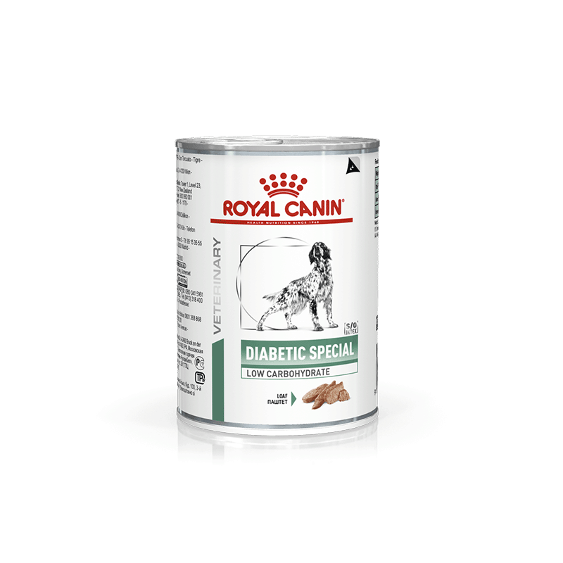 Royal Canin konservai šunims, sergantiems cukriniu diabetu. Dietinis maistas padeda reguliuoti gliukozės kiekį kraujyje ir palaiko gerą bendrą augintinio savijautą.