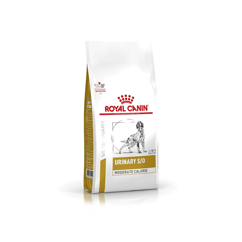 Royal Canin Urinary S/O Moderate Calorie Dog – veterinarinė dieta šunims, skirta šlapimo takuose susidariusiems struvitiniams akmenims tirpdyti.