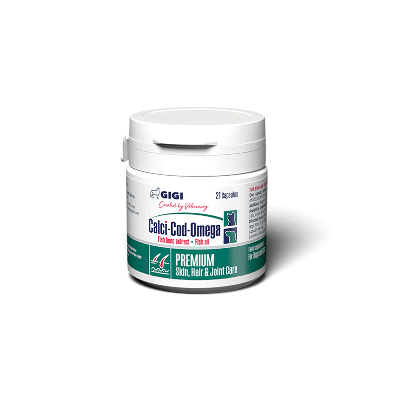 GIGI Calci-Cod-Omega, 21 kaps. – papildai katėms ir šunims.