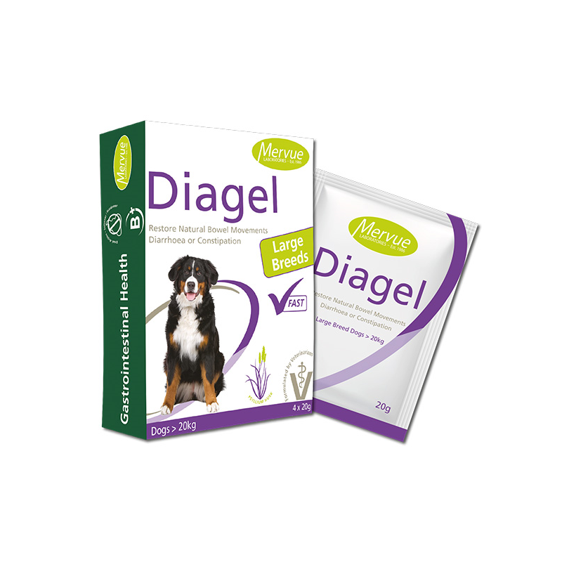 Mervue Diagel pašaro papildas didelių veislių šunims, turintiems virškinimo sutrikimų: viduriuojant ar esant užkietėjusiems viduriams.