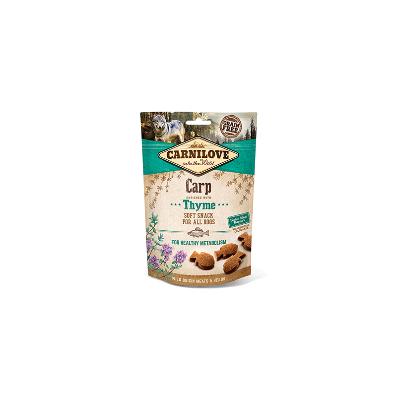 Carnilove Dog Carp with Thyme – pusiau drėgni šunų skanėstai, puikiai tinkantys kasdienei šunų mitybai paįvairinti.