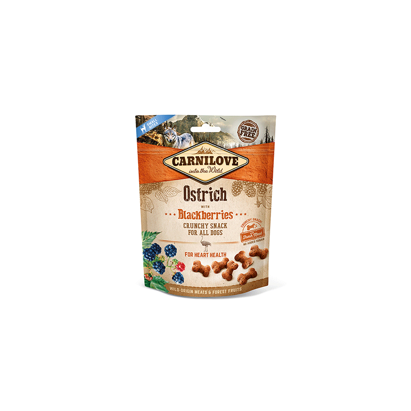 Carnilove Dog Ostrich with Blackberries – pusiau drėgni šunų skanėstai, puikiai tinkantys kasdienei šunų mitybai paįvairinti.