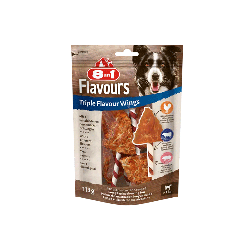 8in1 Flavours trigubo skonio sparneliai šunims, 113 g