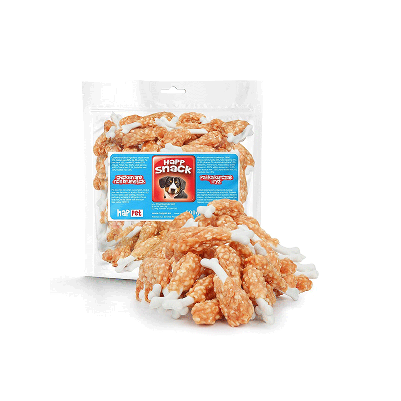Happet Chicken & Rice Drumstick vištienos kulšelės skanėstai šunims