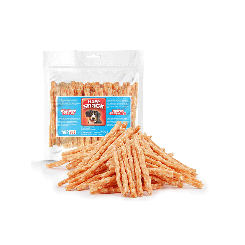 Happet Chicken & Rice Stick vištienos lazdelės skanėstai šunims, 500 g