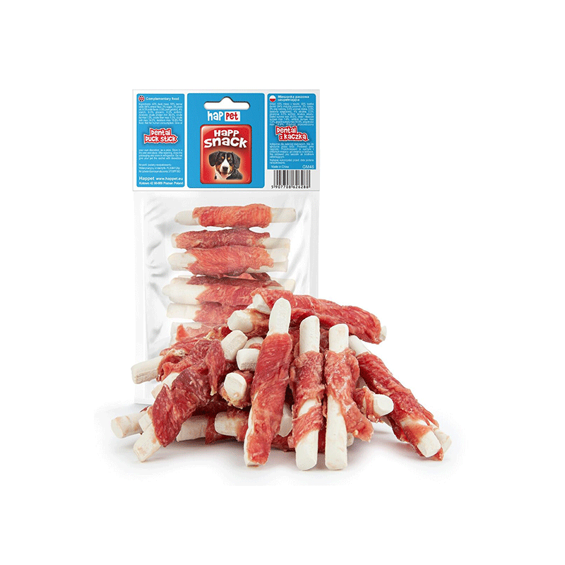 Happet skanėstai šunims, stiprinantys dantis ir dantenas. Gardžios lazdelės, apvyniotos antienos mėsa, ypač mėgstamos net išrankiausių šunų.
