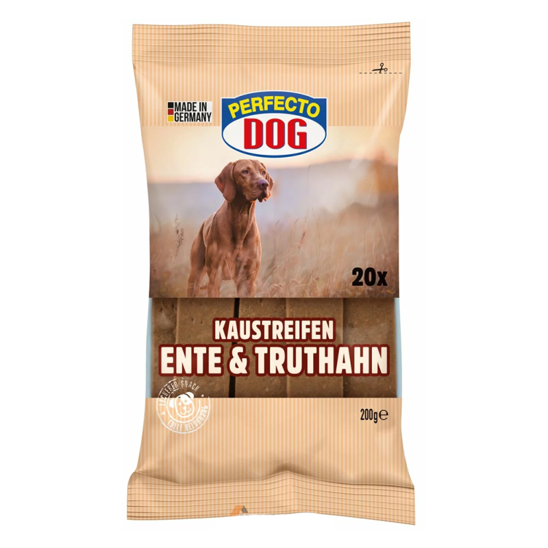Perfecto Dog juostelės su antiena ir kalakutiena šunims, 200 g