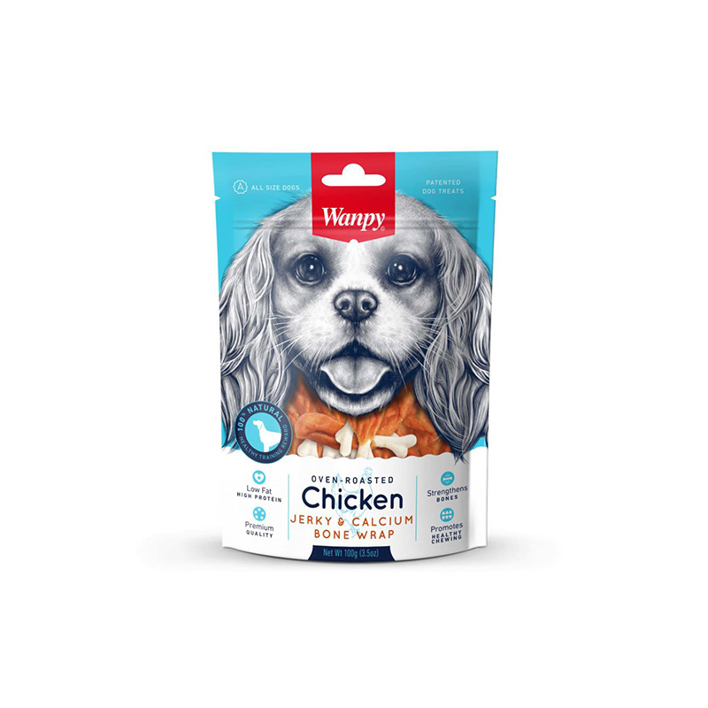 Wanpy Chicken Jerky vytintos vištienos ir kalcio kauliukų skanėstai šunims, 100 g