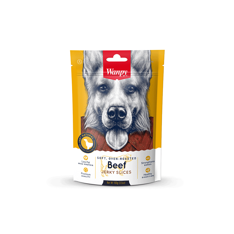Wanpy Jerky Beef Slices – gardūs šunų skanėstai iš jautienos.