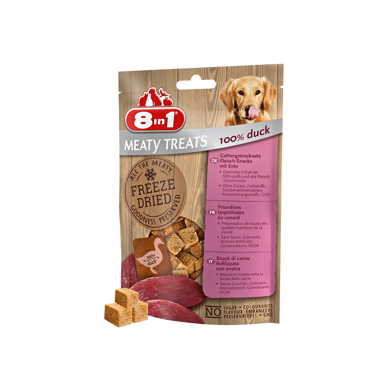 8in1 Meaty Treats Freeze Dried treats with 100% duck breast – skanėstai šunims su šaltyje džiovinta antienos krūtinėle.