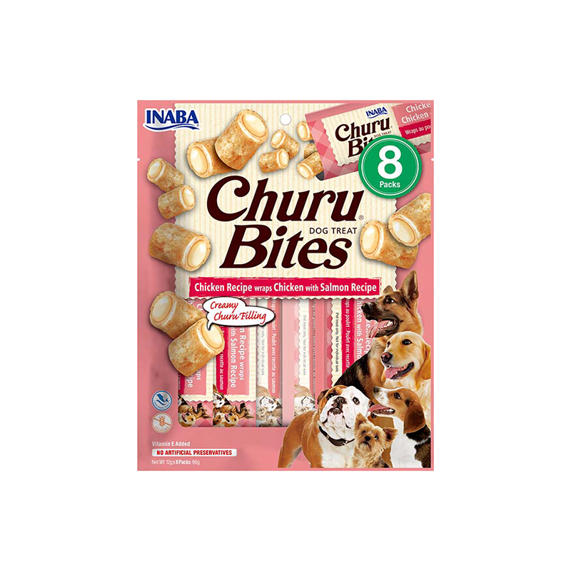 Churu Bites suktinukai su vištiena ir lašiša skanėstai šunims, 8 vnt.