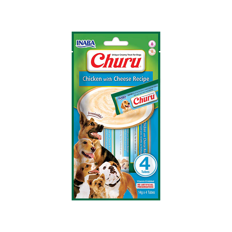 Churu skanėstai šunims, kurių sudėtyje mažai kalorijų, gausu drėgmės ir nėra grūdų. Gardus kreminis užkandis, puikiai tinkantis treniruočių metu, papildams paslėpti ar sausam pašarui pagardinti.