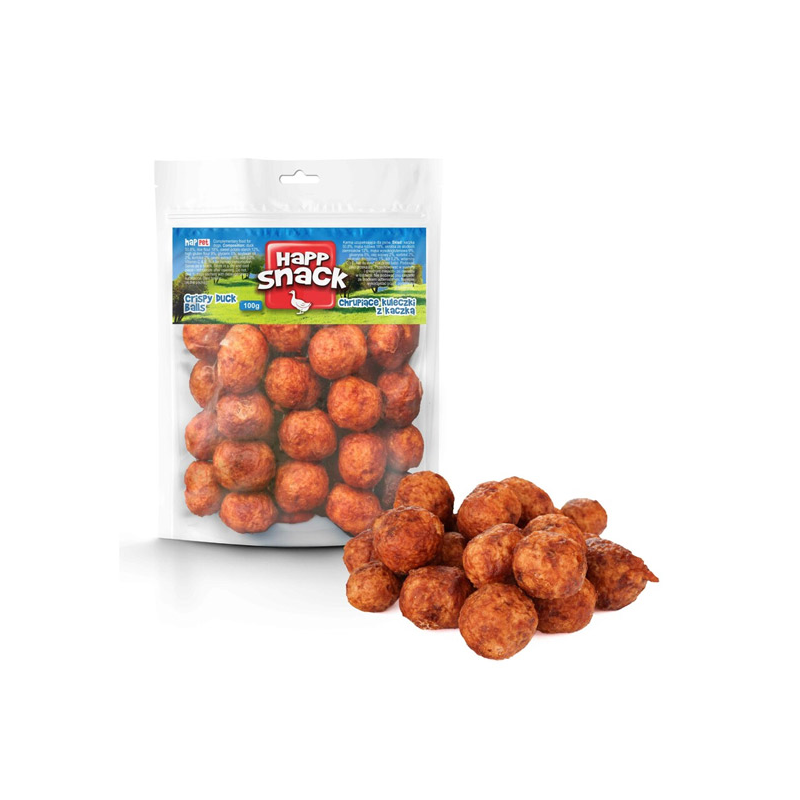 Happet traškūs antienos kamuoliukai skanėstai šunims, 100 g
