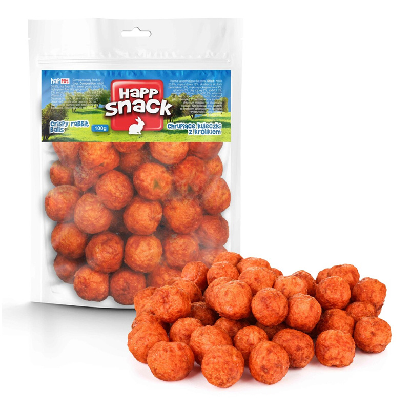 Happet traškūs triušienos kamuoliukai skanėstai šunims, 100 g