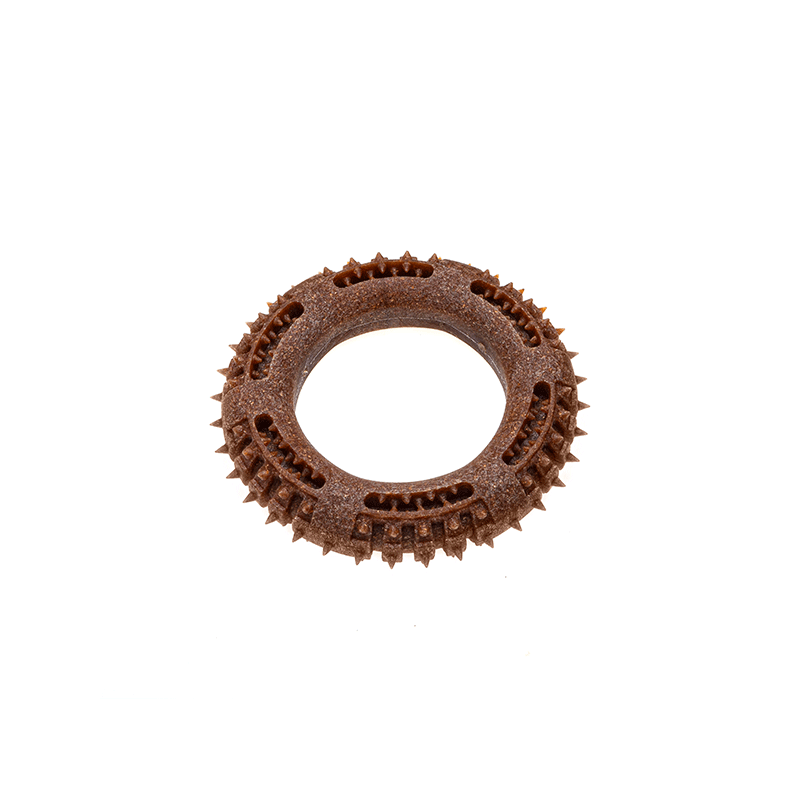 Ecomfy šunų žaislas skanėstams, pagamintas iš TPE plastiko ir perdirbtos medienos mišinio. Natūralios spalvos ir kvapo, skatinančio gyvūną žaisti!