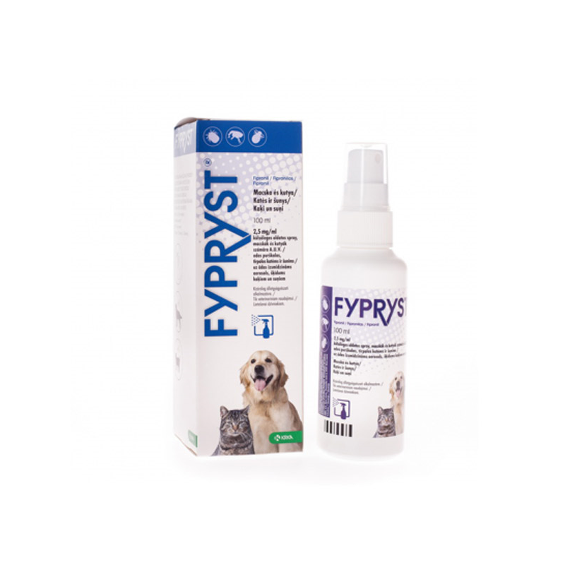 Fypryst – antiparazitinis purškalas šunims ir katėms, turintiems erkių ar blusų.