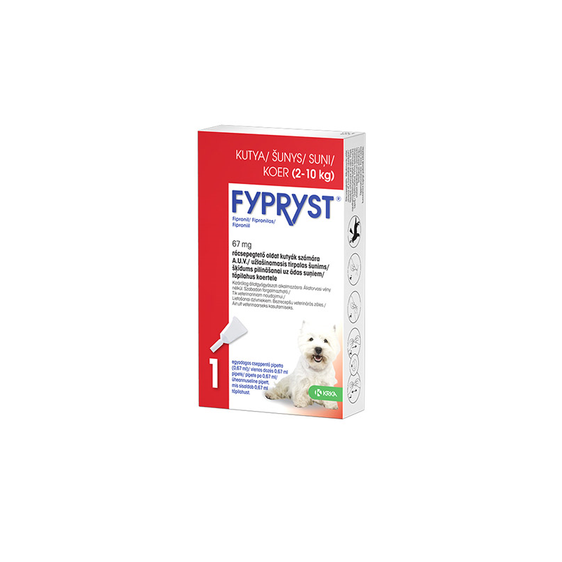 Fypryst antiparazitinis užlašinamasis tirpalas šunims, (2–10 kg), 67 mg