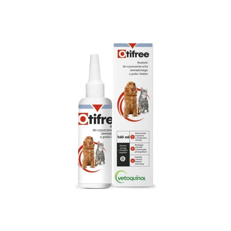 Vetoquinol Otifree – ausų valiklis katėms ir šunims.