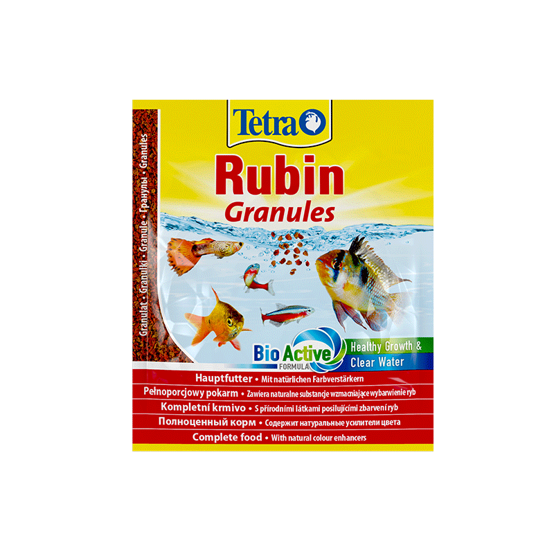 Tetra Rubin Flakes Granules, 15 g – pašaras žuvims.
