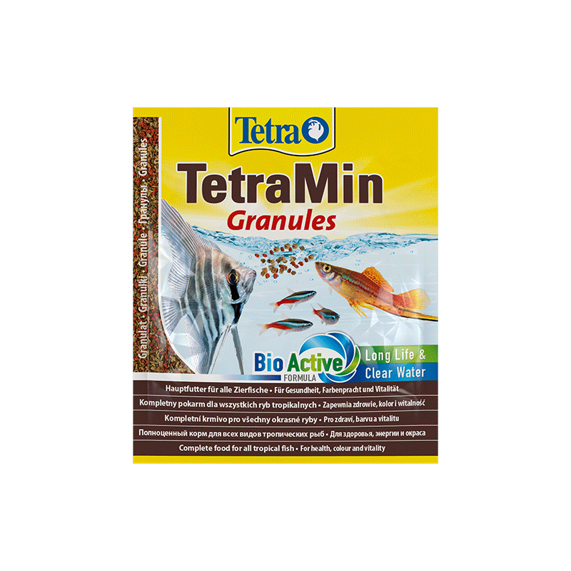 Tetra smulkiagrūdžių granulių pašaras dekoratyvinėms, gėlavandenėms žuvytėms. Maistas pagamintas iš aukštos kokybės žaliavų ir papildytas vertingais prebiotikais.